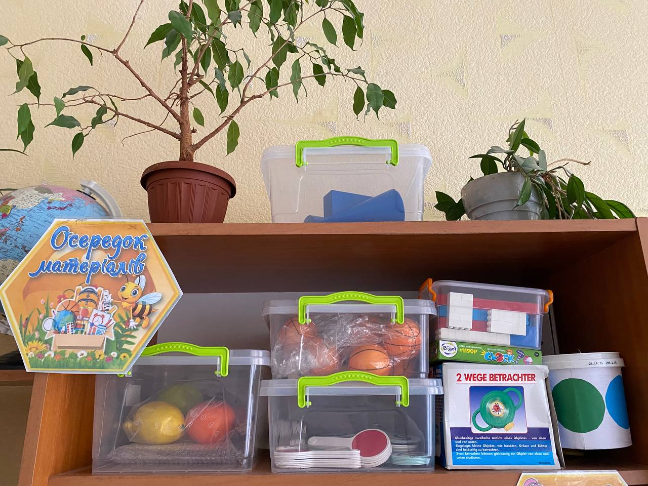 Осередок матеріалів – це осередок дослідницько-пізнавальної діяльності учнів. У цій зоні учні вивчають будову сонячної системи і землі, знайомляться з природними та погодними явищами. Тому осередок наповнений стендами, плакатами, глобусом, дидактичними матеріалами для уроків, цікавинками з біології тварин.