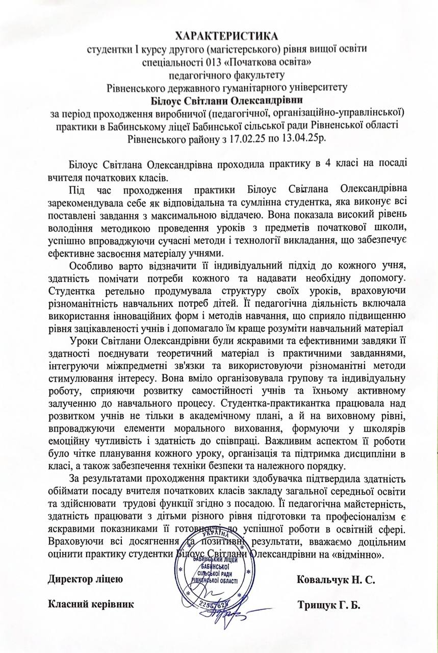 Характеристика на студентку-практикантку